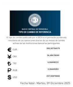 El lunes, 8 de diciembre, es feriado bancario, por lo que informó el valor oficial para las transacciones de este martes 9 de diciembre. El Blanco Central de Venezuela (BCV) actualizó las tasas cambiarias. El lunes, 8 de diciembre, es feriado bancario, por lo que el BCV informó el valor oficial para las transacciones de este martes…