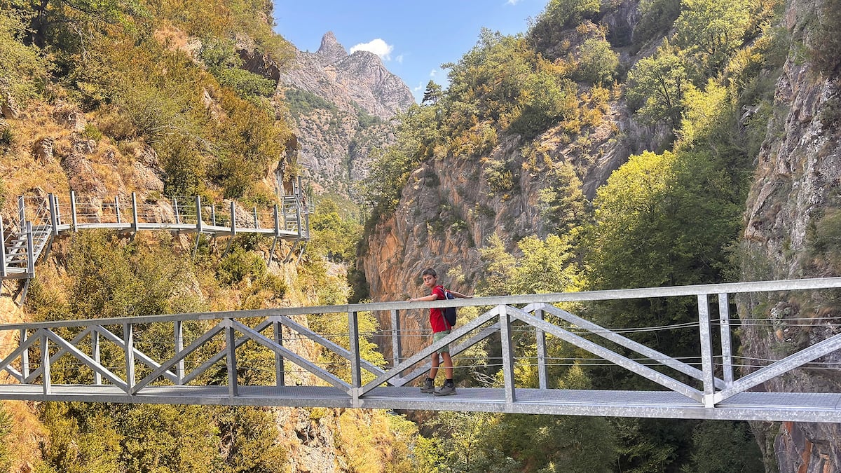 Las Pasarelas de Panticosa son aptas para niños a partir de 7 años y menos de 130 centímetros. Se encuentran a las afueras del pueblo oscense, a 500 metros del parking, donde ya se encuentra la señalización que lleva al comienzo del camino. En un pequeño recorrido de menos de un kilómetro y 160 metros de desnivel (aproximadamente, lleva una hora de duración) se observan a vista de pájaro el barranco y las pequeñas cascadas que forma el río Caldarés. Al terminar las pasarelas, se puede optar por regresar al pueblo directamente en un paseo de 30 minutos o subir pasando por un par de búnkeres al mirador de O Calvé, con una panorámica estupenda al atardecer del pueblo y las montañas circundantes.