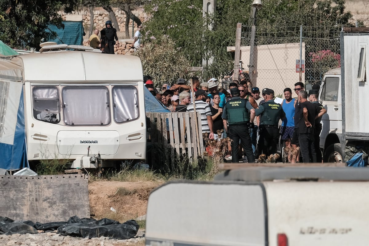 El Juzgado de Primera Instancia número 5 de Ibiza ha ejecutado este miércoles la sentencia de la Audiencia Provincial de Baleares dictada el pasado mes de marzo que contemplaba el desalojo del asentamiento ilegal ubicado en el barrio de Can Negre, en el término municipal de Santa Eulària, en la isla de Ibiza. Este asentamiento conformado por caravanas, coches, tiendas de campaña e infraviviendas está levantado en un solar privado conocido como Can Rova. El terreno es propiedad de seis hermanos y uno de ellos es el que ha estado gestionando el asentamiento ilegal durante los últimos años con la oposición del resto, que finalmente llevaron el asunto a los tribunales. El gestor del solar cobraba a los residentes por instalar las caravanas o vivir en las tiendas, en un terreno en el que se habían instalados baños portátiles y fuentes de agua para los usuarios. En el censo realizado por los propios residentes en el asentamiento el mes pasado se contaron 695 personas, aunque tiempo atrás la cifra era incluso superior.