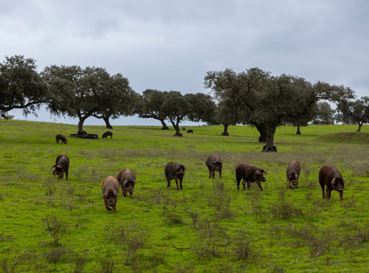Ya están los cerdos comiendo bellotas en la dehesa de Extremadura. Buscan alimento a su aire en el parque natural de Cornalvo, a 10 kilómetros de Mérida. Se encuentran cercados, claro, y las fincas tienen dueño, pero los senderos que las atraviesan son públicos y por ellos se camina (forman parte de alguna de las nueve rutas de senderismo existentes). Grupos de escolares y familias de la zona se acercan a ver cómo los gorrinos engordan hasta un kilo al día, dicen los que hacen jamones de ellos. También hay turistas a los que envía el parador de Mérida, una recomendación personal de Daniel de Lamo, su director, que los anima a acercarse por su cuenta: para este safari no se necesita guía. Gusta la dehesa, no se conoce tanto (tampoco Extremadura). Tiene su aquel el paisaje: el verde intenso de la hierba, alimento también para los cerdos; el verde más oscuro de las encinas y los alcornoques; el pelo negro de los animales, que no paran, que hacen 10 kilómetros al día. Merece la pena la excursión a esta sabana –incluso si llueve (ver foto de abajo)–, complementa las esperadas visitas al anfiteatro o al teatro romano de Mérida.