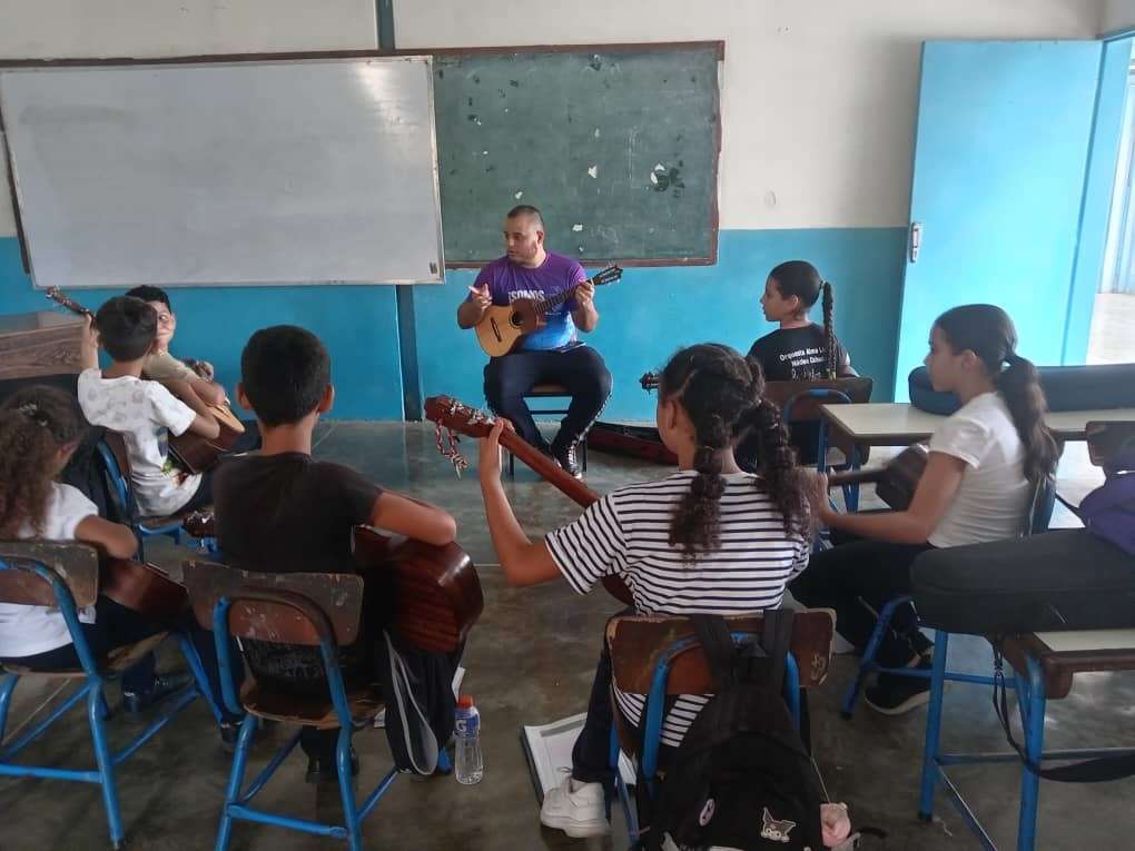 Sobre los aportes de la percusión en los niños, señala que ayuda a la motricidad y a su perfección. “La ejecución del cuatro afina el oído y ayuda también a la motricidad y a delinear los sentimientos”, indica.