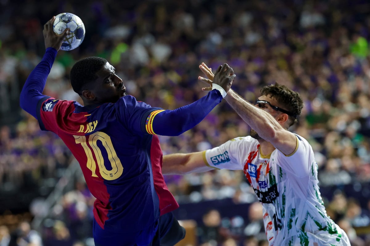 N’Guessan, Frade, Carlsbogard… Se sucedían los goleadores en el Barcelona hasta que Dika Mem, el capitán, el jugador que si no es el mejor del mundo poco le falta —ahí aparece Gidsen, del Füchse—, se erigió en el faro azulgrana, siempre tan físico y habilidoso para descontar rivales con sus movimientos de cadera, también porteros con sus latigazos de zurdo. Cuatro de los siete primeros goles, Marsellesa en azulgrana. Supo el Magdeburgo, sin embargo, atemperar los nervios y estirar más sus ataques, hacer daño con la paciencia. Así que lo que sudaba corriendo hacia atrás, lo recuperaba atacando, resuello y goles para que el rival no abriera brecha. Y aunque el Barça llegó a irse de cuatro tantos, la rigurosa expulsión de Petrus le descompuso; una inferioridad que el Magdeburgo aprovechó de lo lindo, capaz de cerrar el acto con tablas (18-18). En el Barcelona, en cualquier caso, se miraba con fe a Mem y su recital, saltos con muelles y tiros teledirigidos, siete de ocho en la primera mitad. Ahí es nada. Y llegó la fatalidad.