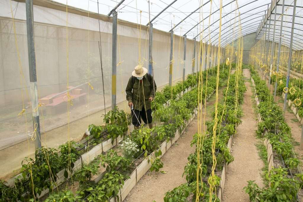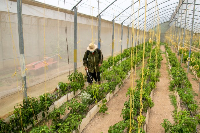 La ruta culmina con un paseo por los invernaderos, donde Olga Carrasco explica cómo la asociación Agricatia cultiva desde tomates, pimentón, legumbres y hortalizas, hasta plantas medicinales.
