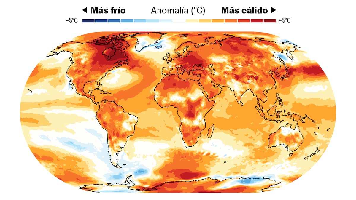 Ya se había adelantado en diciembre, pero ahora se ha anunciado de forma oficial: 2024 fue el año más cálido registrado en el planeta y el primero en el que se superó en conjunto un aumento de 1,5 grados respecto a los niveles preindustriales. El preocupante balance climático del año pasado en la Tierra se hace público este viernes, en una acción coordinada por las principales instituciones que monitorean el clima planetario: la Organización Meteorológica Mundial (OMM), la NASA, la Oficina Nacional de Administración Oceánica y Atmosférica (NOAA) de Estados Unidos, la Oficina Meteorológica del Reino Unido, Berkeley Earth y el Centro Europeo de Previsiones Meteorológicas a Plazo Medio (ECMWF), coordinador del Servicio de Vigilancia de la Atmósfera del Programa Copernicus.