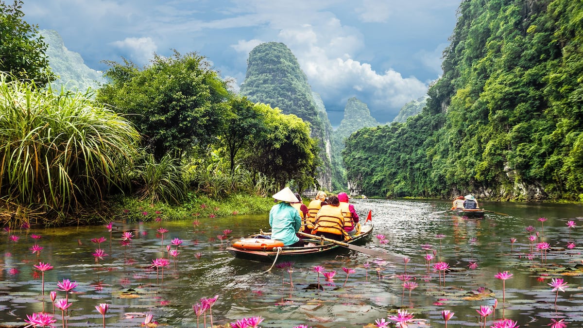 En ese afán de equiparar y catalogar lugares, la provincia de Ninh Binh, situada al norte de Vietnam, a unos 100 kilómetros de Hanói, es conocida habitualmente como la Halong terrestre, comparándola con ese laberinto de más de 3.000 islotes y pináculos marinos que ostenta el privilegio de ser considerada una de las siete maravillas naturales del mundo. Sin embargo, aquí el agua es dulce, los arrozales y los campos de loto se extienden hasta más allá del horizonte y la experiencia del viajero es, por el momento, algo más auténtica. No se visita a bordo de un crucero organizado y la recomendación es alquilar una moto o una bicicleta y permitirse recorrer la zona sin prisas ni programas.