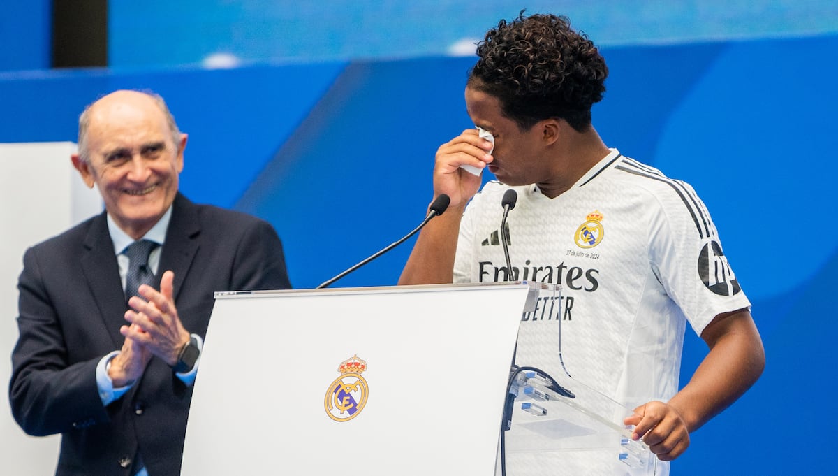 Más tarde, ya vestido de traje en la rueda de prensa posterior, Endrick explicó el porqué de las lágrimas en su presentación: “No estaba en los planes [llorar], pero como he dicho, desde pequeño amo al Real Madrid y ver a mis padres llorando por verme cumplir mi sueño me tocó el corazón, porque sin ellos yo no estaría aquí”, comentó. Al ser cuestionado sobre su futuro inmediato – su rol en un equipo lleno de grandes jugadores, su capacidad para sobreponerse a la presión que implica jugar en el Real Madrid o su competencia directa con Mbappé–, Endrick resolvió las preguntas más espinosas con la misma receta, poniendo los pies en el presente: “Para ser sincero, estoy alucinado con el día de hoy. Ha sido un día maravilloso y no quiero hablar de otra cosa. Ahora solo quiero disfrutar. Estoy muy centrado en aprender mucho de estos jugadores estupendos”.