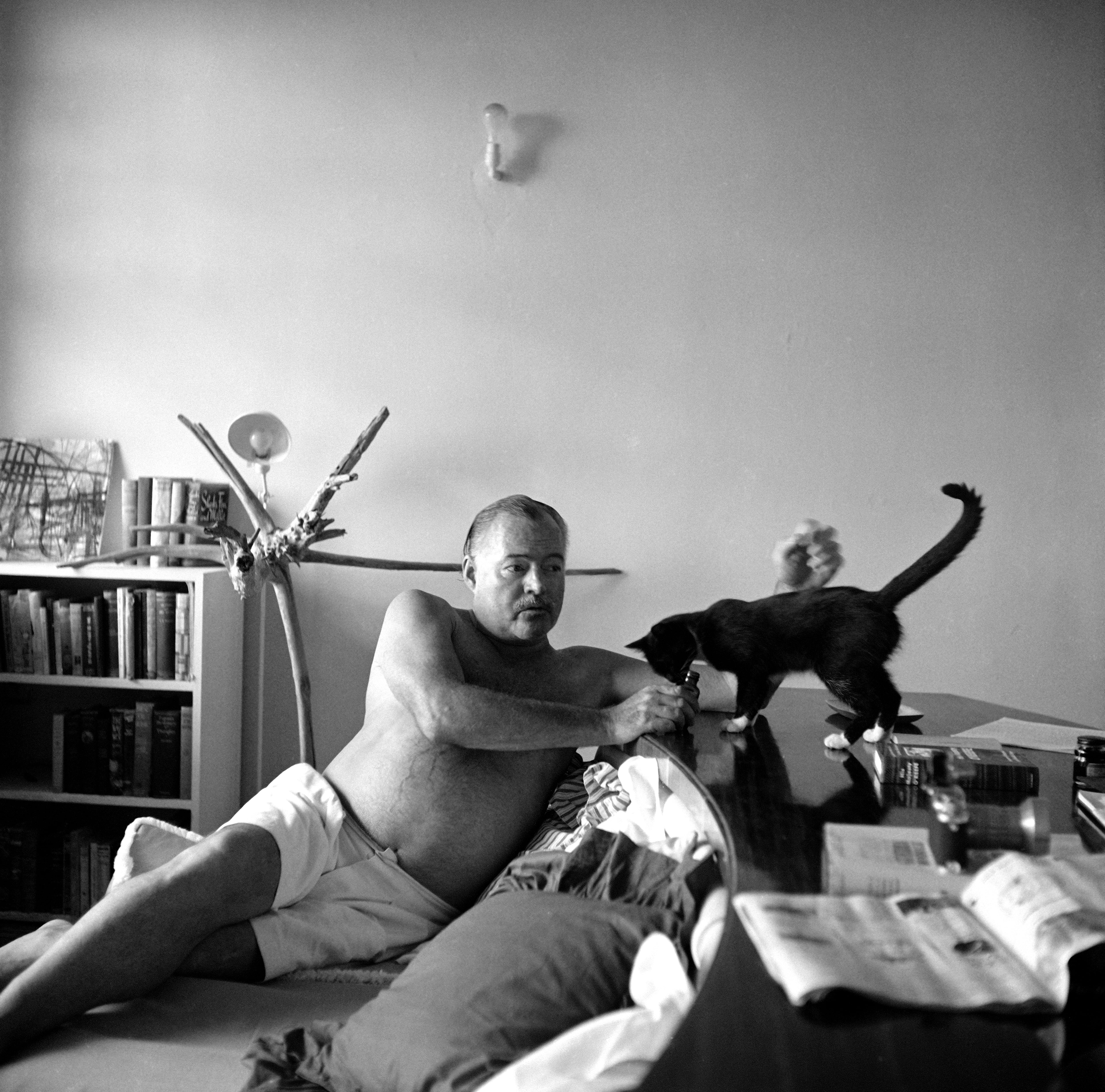 Para que la personalidad de Hemingway sea completada, queda su amor por los animales que lo acompañaron: nueve perros, la vaca, el búho americano y la montonera de gatos que el escritor adoptaba, sobre todo si eran polidáctilos, es decir, gatos que, debido a una curiosa mutación genética, tienen un dedo de más. Para quien no lo sepa, los gatos suelen tener cinco dedos en las patas delanteras y cuatro en las traseras, pero los polidáctilos tienen —por lo menos— seis dedos en alguna de sus patas; es poco común que un gato sea polidáctilo de todas sus patas.