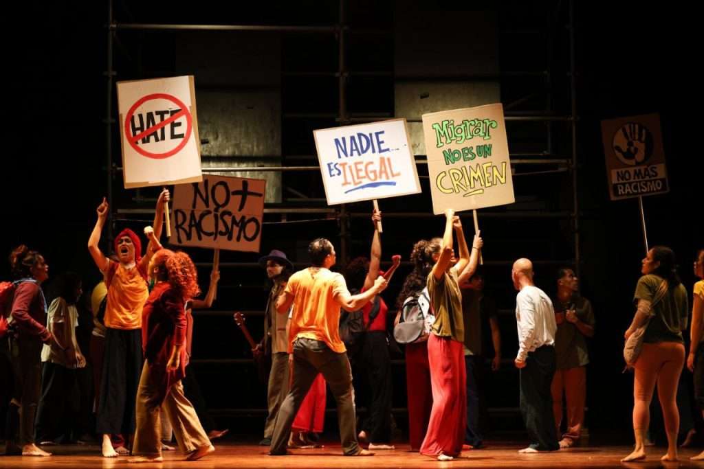 Esta pieza que une el circo, el teatro, la danza, y la música, denuncia, desde el arte, la persecución y el secuestro de migrantes venezolanos en prisiones de El Salvador y Guantánamo, acción dirigida por Estados Unidos.