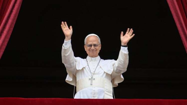 León XIV saludo a la multitud de fieles y peregrinos reunidos en la Plaza de San Pedro. Foto: @Vatican Media.