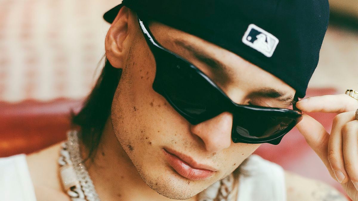 Cuatro furgonetas negras de cristales tintados toman la calle de las Tres Cruces de Madrid como si un presidente del Gobierno acabase de llegar. Tres tipos forzudos bajan del primer vehícu­lo y se muestran preocupados por despejar el tránsito de los apenas seis metros que separan los vehículos de la puerta del edificio. La estrecha arteria de Gran Vía parece convertirse en cuestión de segundos en un escenario de un thriller de Hollywood. El sol de otoño brilla un viernes de noviembre y un puñado de turistas y curiosos se detiene ante el desembarco de pe­lícula. “¿Qué pasa?”. “¿Quién es?”. Las preguntas se disparan. Con gafas de sol y las manos dentro de los bolsillos del pantalón, sale del coche un tipo delgado y pálido, coronado por una gorra oscura que casi parece tragarle. Camina lento y apático tras los guardaespaldas. No sonríe, no gesticula, no saluda. Debajo de la gorra se esconde Peso Pluma, el último gran fenómeno de la música latina. Llega tarde, muy tarde, al programa La resistencia, pero no parece estresado. Nada parece ir con él y, sin embargo, todo el mundo está pendiente de sus pasos.
