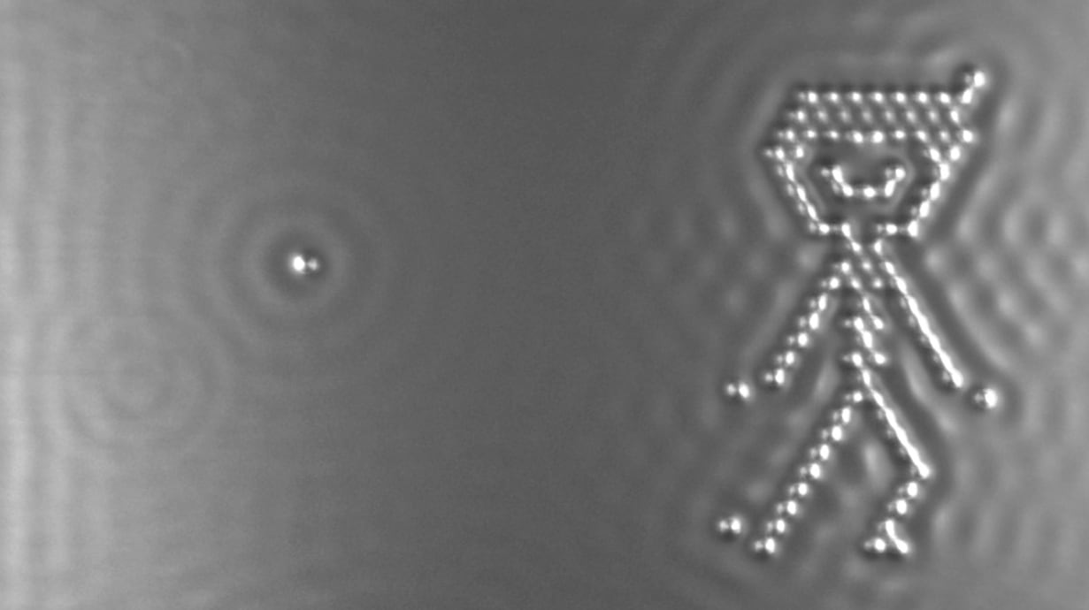 Desde el punto de vista de la física clásica, tenemos esa repulsión y atracción. Ya sabemos que las partículas con la misma carga se repelen y las de distinta carga se atraen. Como los electrones tienen todos carga negativa, se repelen; pero se atraen hacia las partículas de carga positiva. El agua se pega al cristal pero también está cohesionada entre ella, y eso se debe a esas repulsiones y atracciones. Ocurre como durante la adolescencia, cuando las chicas y chicos tienen apego por su casa y su familia pero también empiezan a tener apego por el exterior y los grupos de amigos.