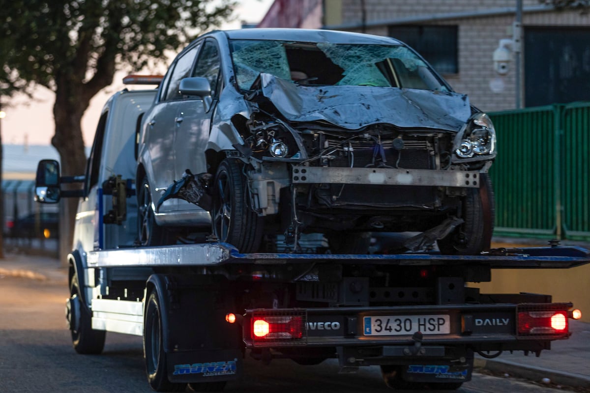 Las cámaras de una empresa del polígono captan al fondo el coche del Portugués saliendo de la callejuela en la que estaba aparcado a toda velocidad. Tienen un desfase horario de una hora. La Policía Municipal, encargada de investigar los accidentes de tráfico, utiliza estas imágenes, los testimonios de los presentes, los restos del vehículo en la escena y las imágenes que capta con un dron para simular el recorrido del vehículo y la manera en la que atropelló a las víctimas. La estimación de la policía municipal señala que el coche pudo llegar a alcanzar los 62 kilómetros por hora. En el lugar de los impactos quedó tirada la carcasa del ventilador y el parachoques delantero del vehículo del Portugués.