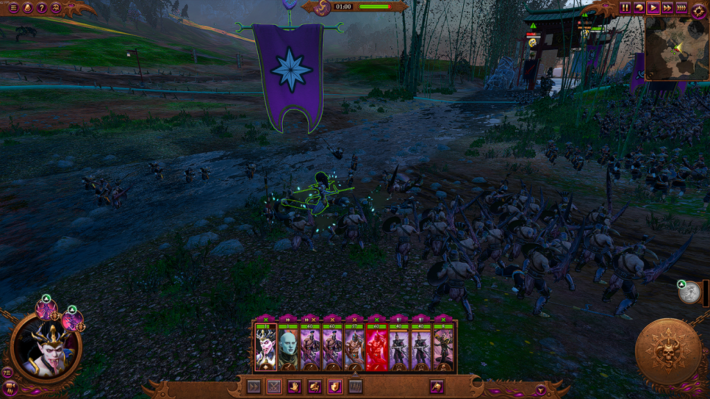 Su campaña es igualmente oscura y poderosa: los asentamientos capturados pueden transformarse en campamentos de esclavos, fortalezas de tortura o palacios de placer, construyendo un ecosistema de corrupción y dominio que fortalece su avance. La comandante, por sí misma, es una combatiente letal con movilidad sobresaliente y habilidades capaces de enfrentarse a múltiples enemigos, lo que le permite controlar el ritmo del combate. Su principal desventaja radica en que su ejército favorece tanto el contacto directo que, si el jugador falla en la coordinación o pierde el momentum, puede quedar expuesto a daños concentrados desde la distancia.