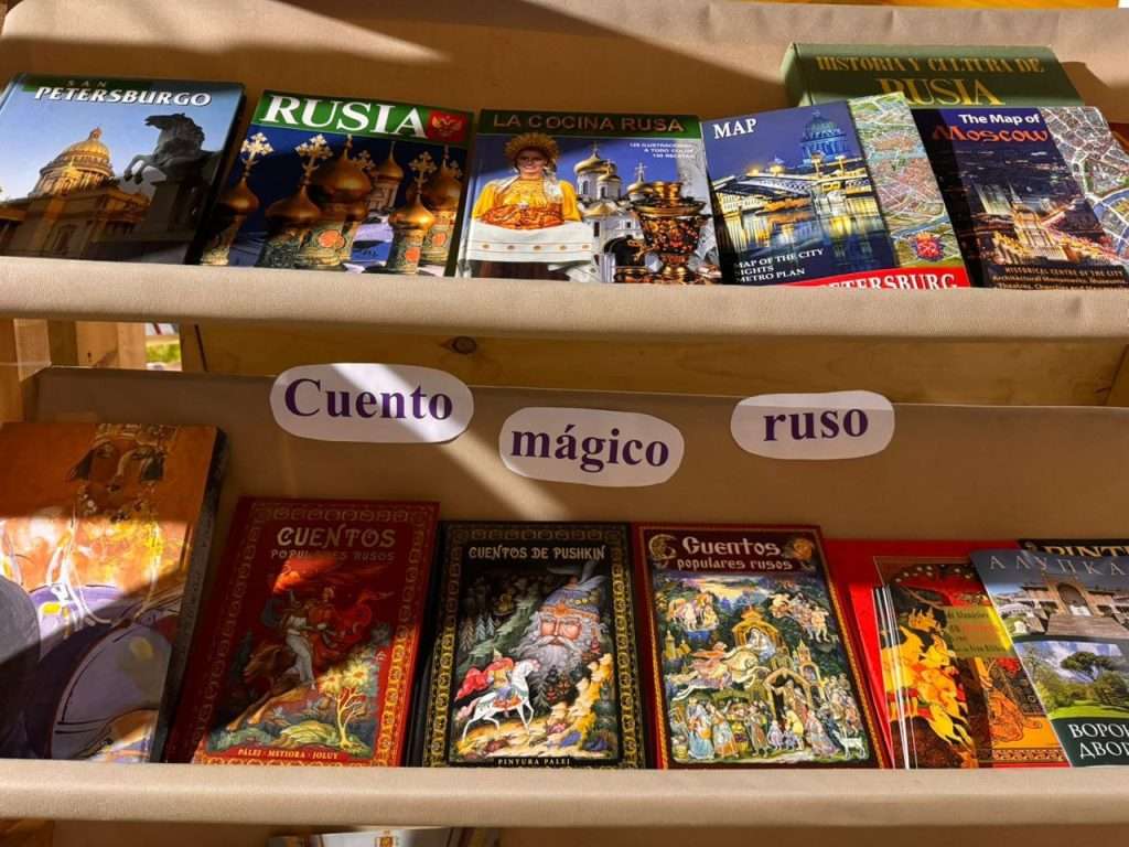 El día de la inauguración, los asistentes podían familiarizarse con una amplia selección de libros rusos, entre ellos clásicos de la literatura y obras contemporáneas traducidas al español. Los más pequeños disfrutaban de un espacio dedicado a los cuentos tradicionales rusos, poblado de personajes entrañables como Iván Tsarevich, Baba Yaga o el Pez Dorado. Los amantes de los viajes y la fotografía contemplaban exposiciones de imágenes de las ciudades rusas más hermosas.