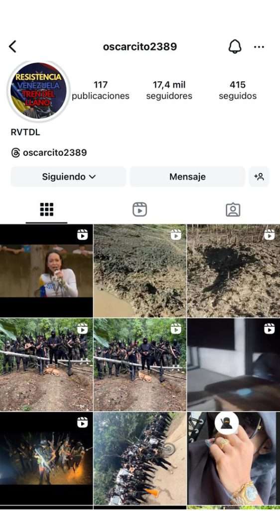 Oscar de Jesús Noguera Hernández (El Diente), máximo líder de la banda criminal Tren del Llano, posteó en su cuenta Instagram, un video de cuando María Corina Machado se presentó este jueves en Chacao, durante una movilización de sus seguidores.