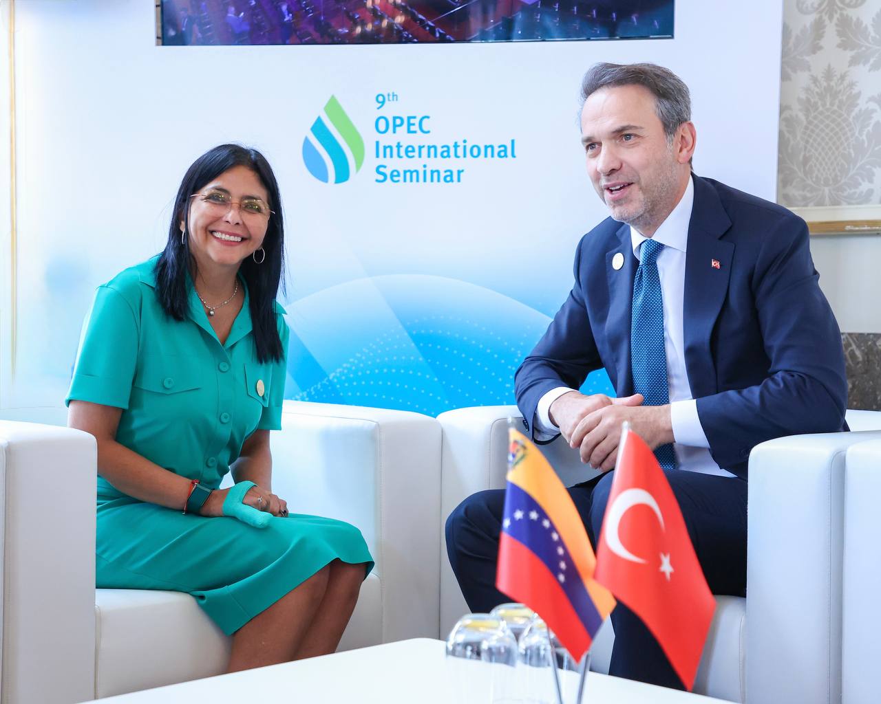 La vicepresidenta de la República, Delcy Rodríguez, se reunió este miércoles con el ministro de Energía de Turquía, Alparslan Bayraktar, en Viena, Austria.